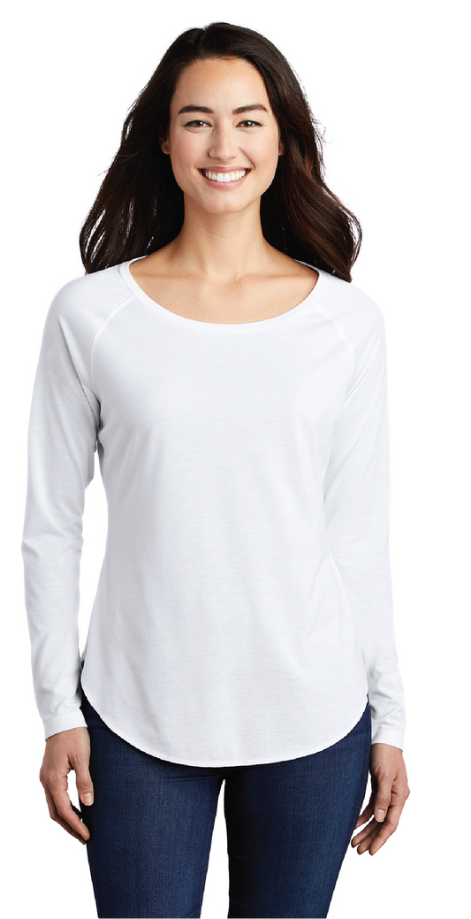 Ladies Long Sleeve Tri-Blend Wicking Scoop Neck Raglan Tee / White / VB United